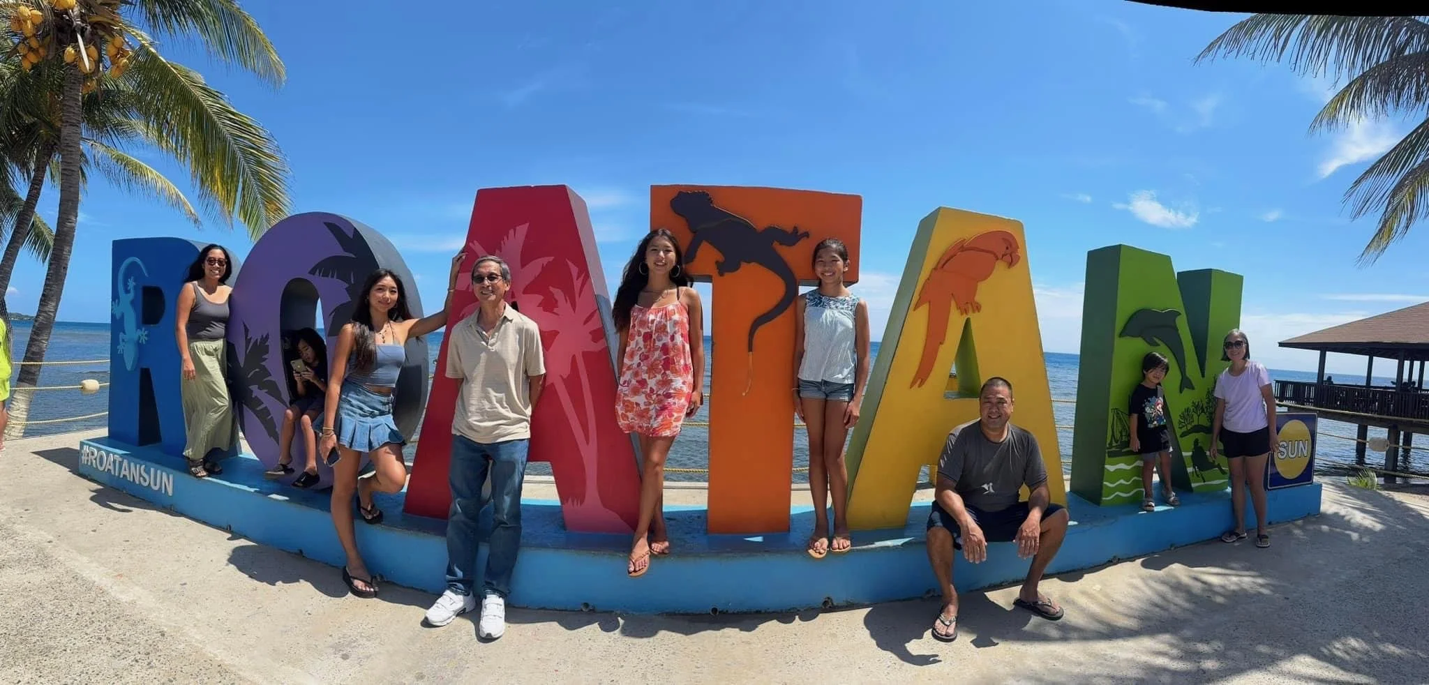 Monkey and Sloth Park, Chocolate Factory, Rum Company, Zipline, and Roatan Sign